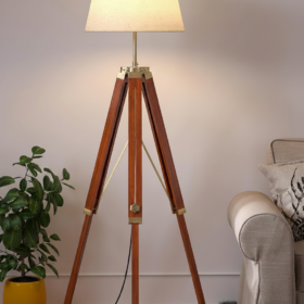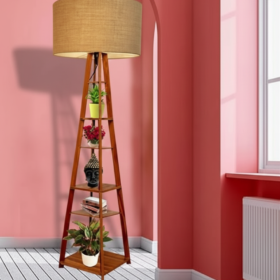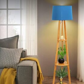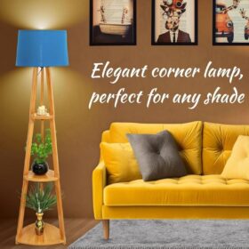 Wooden Floor Lamp with 3-Tier Storage Shelves | Modern Standing Lamp with Fabric Shade | Home Décor Corner Lamp for Living Room, Bedroom & Office