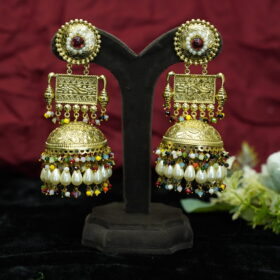 Traditional Gold Plated Pearl Jaal Earrings-003