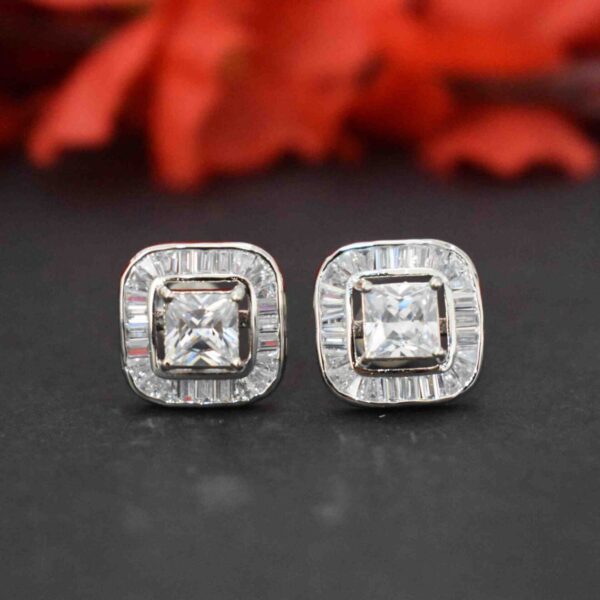Chic square American Diamond ear studs, rhodium-plated for a sparkling, long-lasting finish—perfect for everyday elegance.