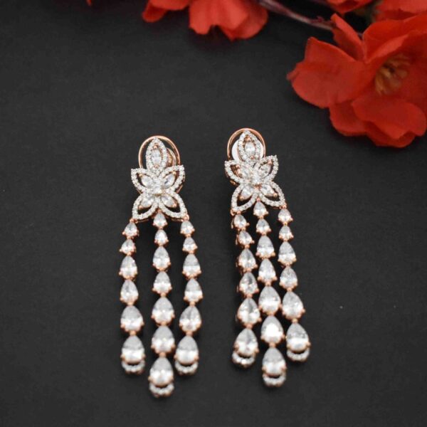 American Diamond Rose Gold Plated Uncut Long Danglers