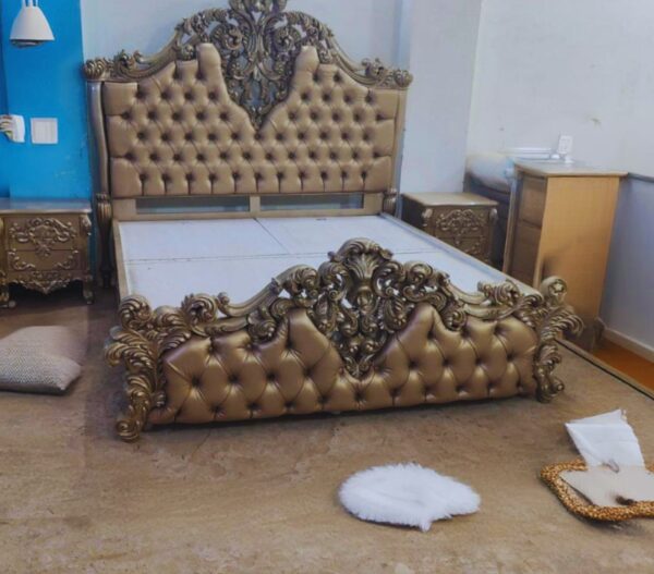Royal Gold Carved Crown Bed – Impressions Art Store