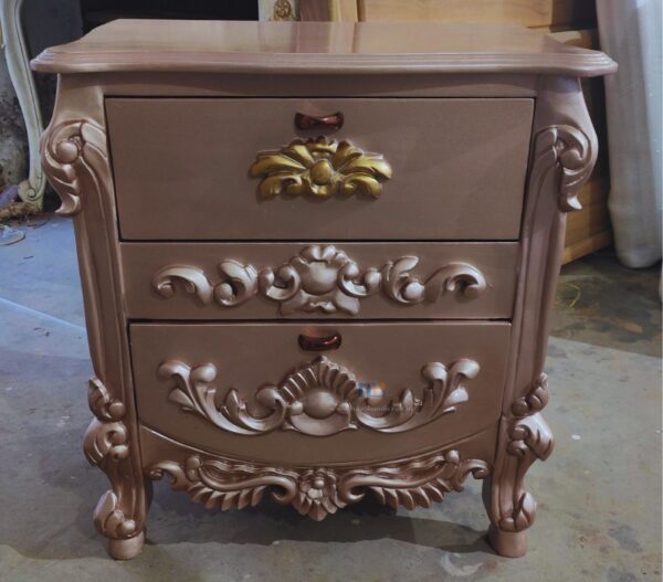 French Beige Luxury King Bed with 2 Side Tables