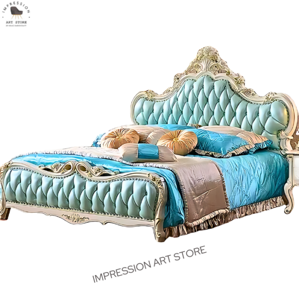 Perfect for master bedrooms, luxury villas, boutique hotels, and royal-themed interiors, this bed blends classic aesthetics with modern comfort. Its elegant color palette and ornate design make it an ideal choice for those who appreciate handcrafted furniture and refined interior décor.