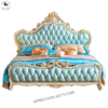 Add royal elegance to your bedroom with this luxury handcrafted upholstered bed featuring a diamond-tufted high headboard and matching footboard. Designed with intricate carved wooden detailing and a soft mint-green finish accented with gold highlights, this bed offers a perfect blend of classic European style, premium comfort, and durable craftsmanship—ideal for luxury bedrooms and statement interiors.