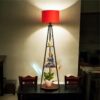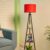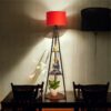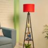 Modern Tripod Floor Lamp with Red Fabric Shade & Wooden Shelves | Decorative Standing Lamp for Living Room & Bedroom