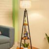 Modern Wooden Shelf Floor Lamp with Fabric Shade | 3-Tier Decorative Standing Lamp for Living Room & Bedroom