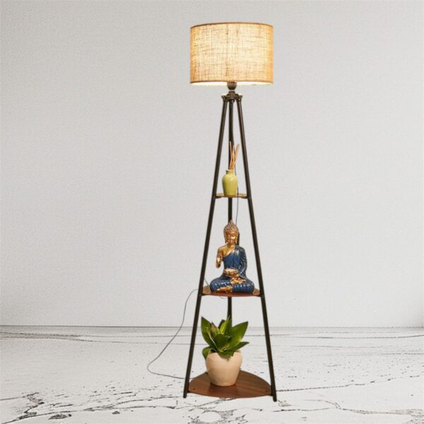 Is lamp me strong metal tripod stand ke saath multiple wooden shelves di gayi hain, jahan aap showpieces, plants, idols, books ya aroma diffusers rakh sakte ho.