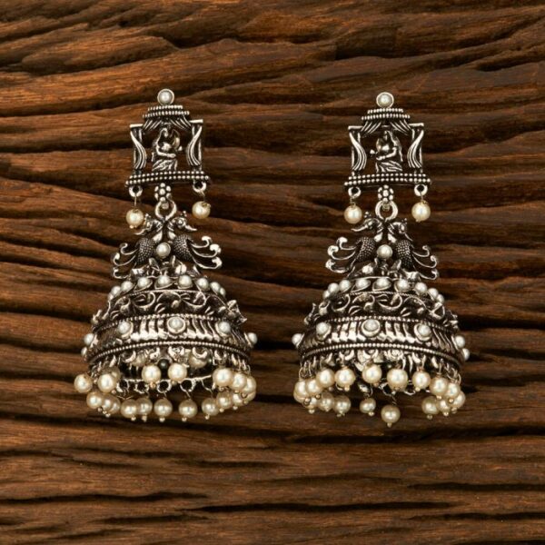 Traditional Oxidised Silver Pearl Jhumki01 crafted with intricate detailing and a classic oxidised finish, beautifully accented with delicate pearl drops. A perfect blend of rustic charm and traditional elegance, ideal for festive wear and ethnic styling.