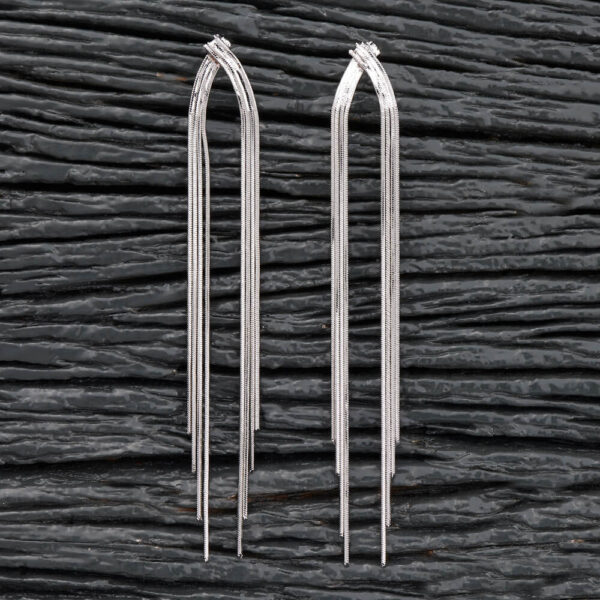The premium rhodium plating enhances durability and gives a polished finish, making these earrings perfect for both casual and special occasions. The lightweight chain design moves gracefully, adding a chic and sophisticated charm to your overall style.