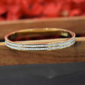 A stylish and elegant bracelet crafted with premium rose gold plating and adorned with sparkling American Diamond stones. Its modern western design offers a luxurious and sophisticated look, making it perfect for parties, weddings, and special occasions. Lightweight and comfortable to wear, this bracelet enhances both western and traditional outfits with a touch of glamour and shine. A timeless accessory that adds elegance to any jewelry collection.