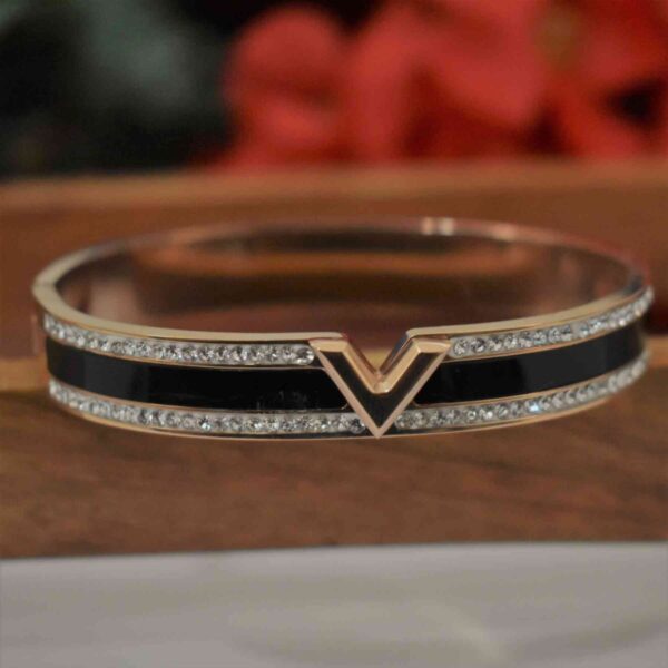 A premium-quality bracelet crafted with rose gold plating and embellished with sparkling American Diamond stones. Its modern western design and elegant shine make it a perfect accessory for parties, weddings, and special occasions. The lightweight and comfortable structure ensures easy wear, while the luxurious finish enhances both western and traditional outfits. This stylish bracelet is an ideal choice for adding sophistication and glamour to your jewelry collection.