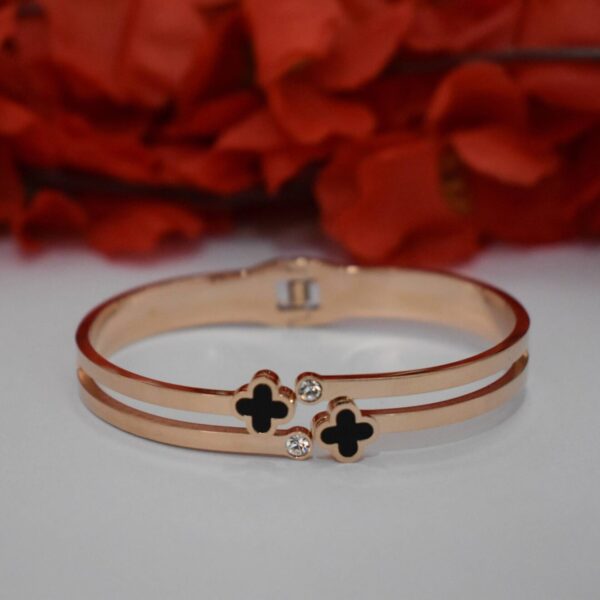 A stylish and elegant bracelet designed to add a modern and sophisticated touch to any outfit. The rose gold plated finish gives it a premium and fashionable look, making it suitable for both casual and formal occasions.