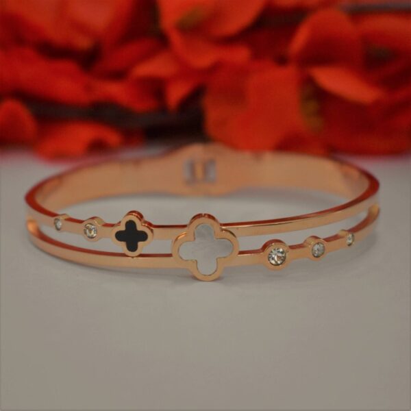 A stylish and elegant bracelet designed to complement modern fashion with a sophisticated touch. The rose gold plated finish adds a premium and trendy appeal, making it suitable for both casual and formal outfits.